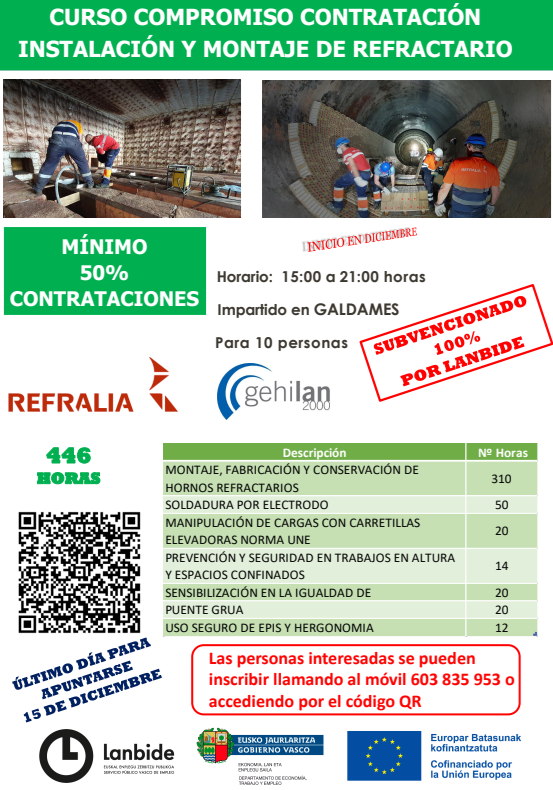 Refralia, en colaboración con Lanbide y Gehilan ofrece el curso «Instalación y montaje de refractarios».